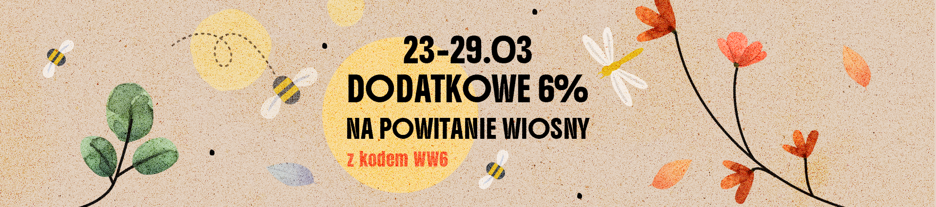 Powitajmy razem wiosnę! Na dobry początek ciepłego, słonecznego i pełnego kolorów czasu przez 7 dni - od 23 do 29 marca do wszystkich złożonych zamówień naliczamy dodatkowe 6% rabatu z kodem "WW6"! Ab...
