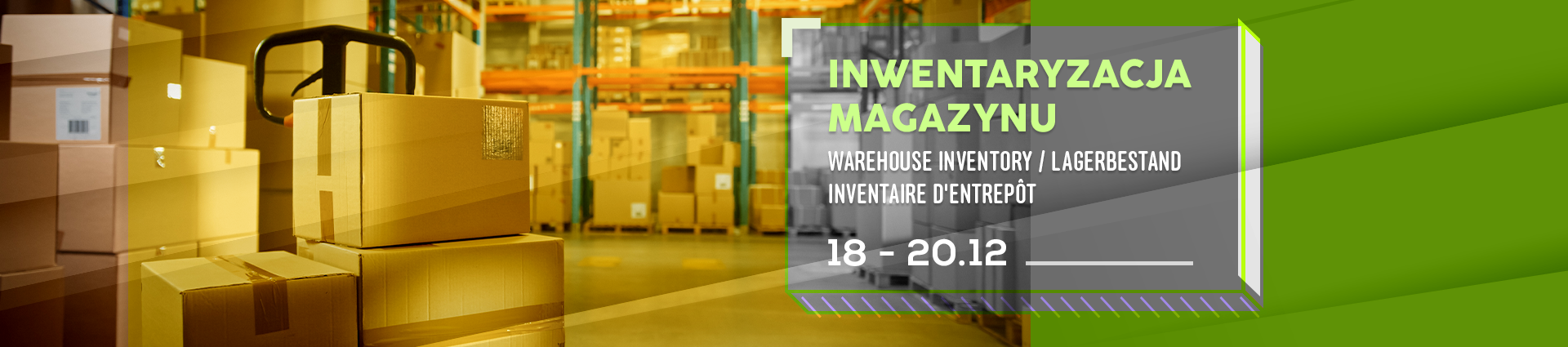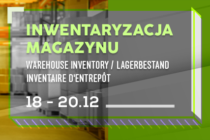 Informujemy, że w dniach od 18 grudnia 2025 r. (włącznie) do 20 grudnia 2025 r. (włącznie) odbywać się będzie inwentaryzacja naszego magazynu towarów. Ze względu na inwentaryzację w podanym okresie ni...