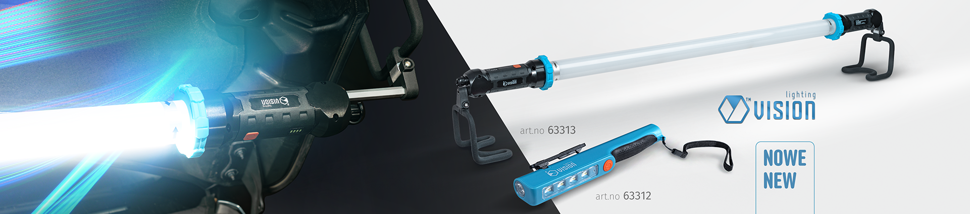 Prezentujemy nowe produkty w asortymencie profesjonalnych lamp warsztatowych VISION. 1. LAMPA WARSZTATOWA / ŚWIETLÓWKA Z ZACZEPAMI POD MASKĘ, 30W 3000 LM, AC/DC (63313) Jest to lampa przeznaczona pr...